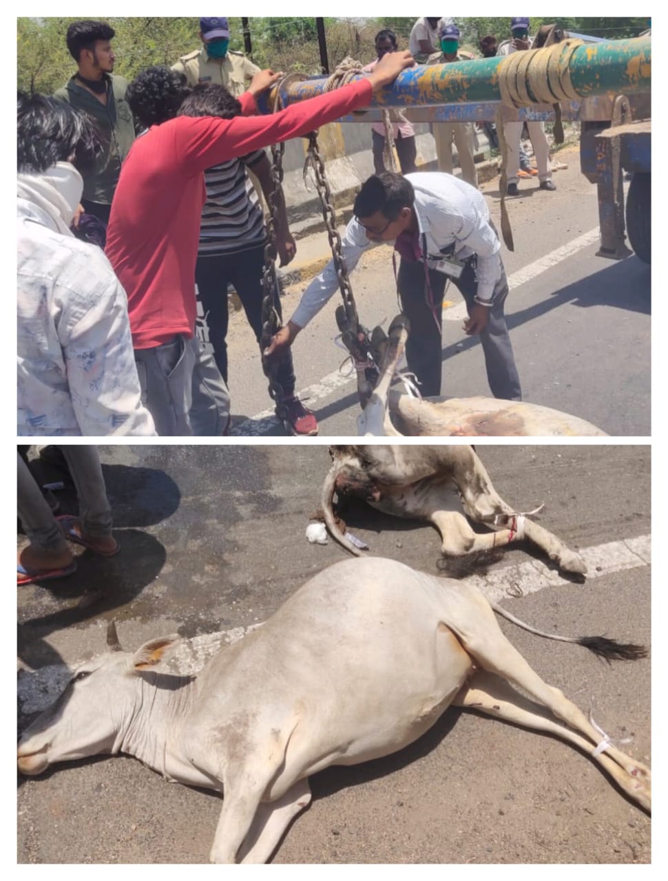 દાહોદ તાલુકાના પુંસરી ગામે નેશનલ ઇન્દોર હાઇવે રોડ ઉપર એક અજાણ્યા વાહનના ચાલકે ભર બપોરે પોતાના કબજાનો વાહન પુરઝડપે હંકારી લાવતા ત્યાંથી પસાર થતા છ જેટલા ગૌવંશને અડફેટમાં લેતા ચાર ગાયોનું ઘટનાસ્થળે જ કરુણ મોત નીપજયું હતું. જ્યારે અતિ ગંભીર રૂપે ઘાયલ થયેલ વધુ બે ગાયોને નજીકના પશુ દવાખાને સારવાર અર્થે ખસેડાયો જાણવા મળેલ છે.