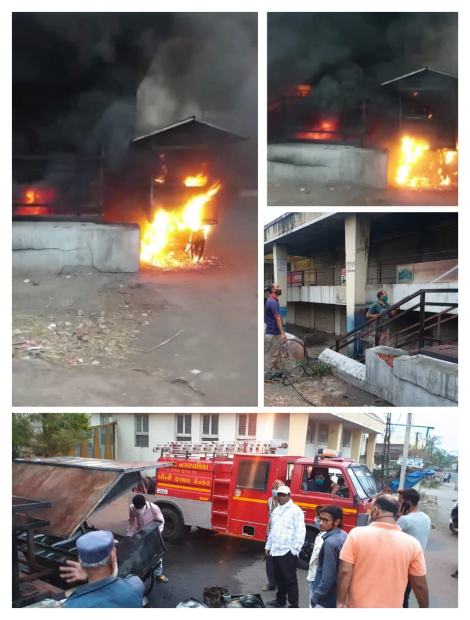 દાહોદના ગરબાડા ચોકડી પર શાક માર્કેટના ગેટ પર ચાની લારીમાં અકસ્માતે આગ લાગતા 30 હજાર ઉપરાંતનો સરસામાન બળીને રાખ