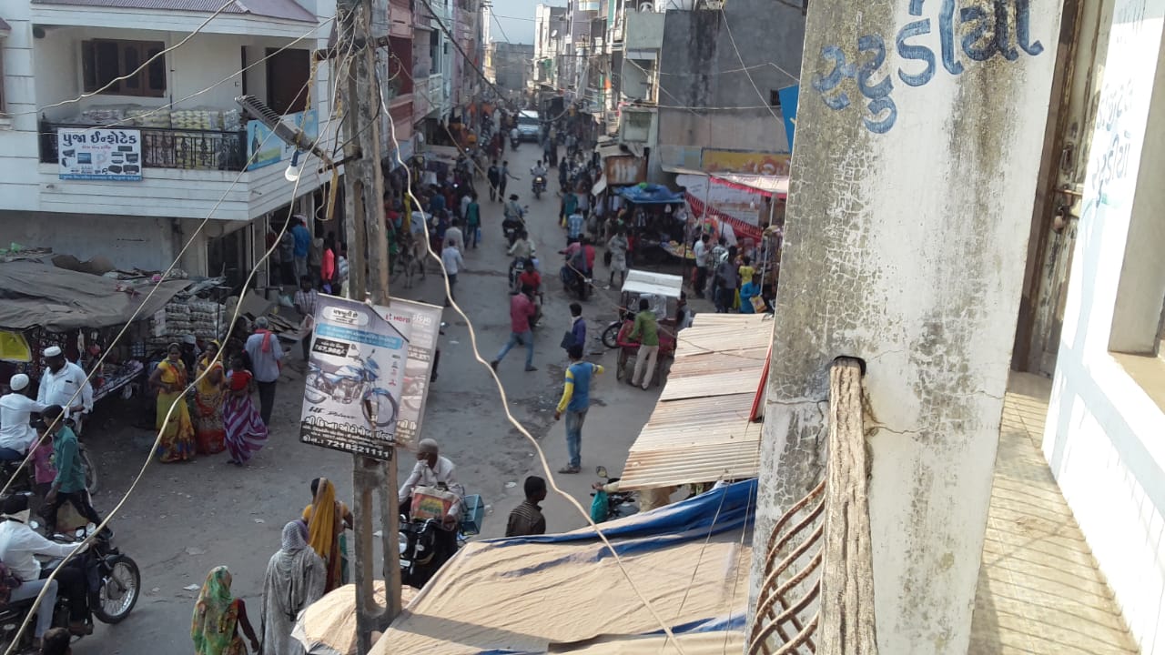 હોય તેમ સોશિયલ ડિસ્ટન્સ તેમજ માસ્ક પહેરવાનું ભૂલ્યા હતા. નગરમાં ઠેર ઠેર ખરીદી કર માટે લોકો દુકાનો ઉપર ઉમટી પડેલ જોવા મળતા હતા હિન્દુ સમાજના સૌથી મોટા પવિત્ર તહેવાર દિવાળી અને બેસતા વર્ષનો હોય લોકોમાં ઉત્સાહ જોવા મળતો હતો ગણતરીના એક-બે દિવસ તહેવારને બાકી હોય ખરીદી નીકળતા વેપારીઓમાં આનંદ જોવા મળતો હતો