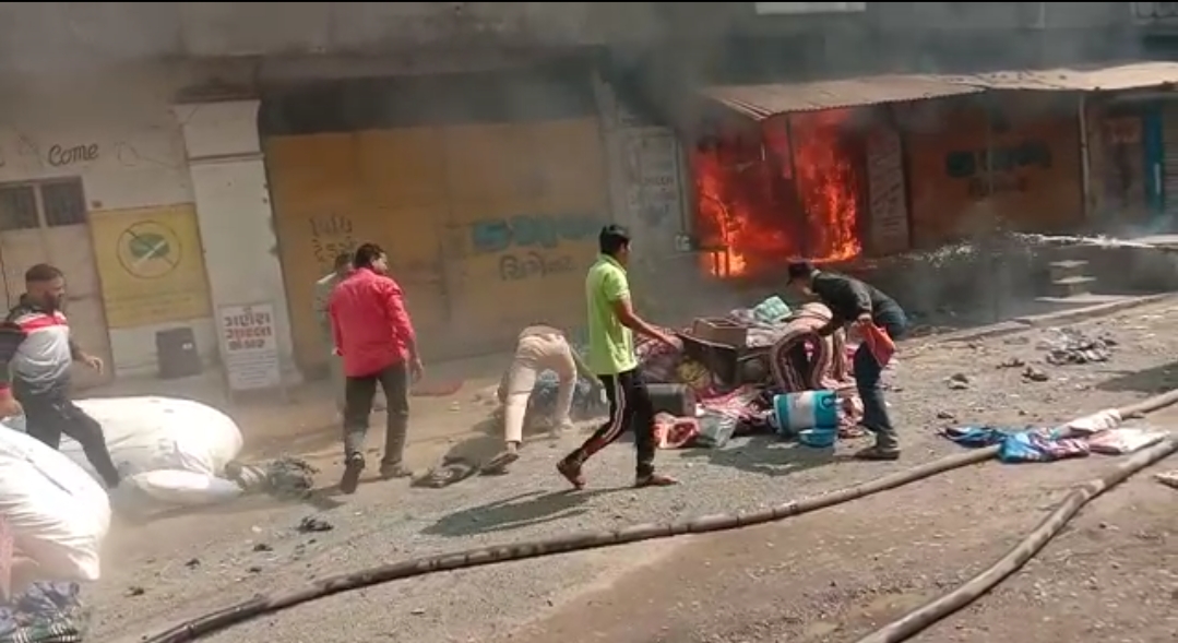 દુકાનમાં લાગેલી આગના દ્રશ્યો