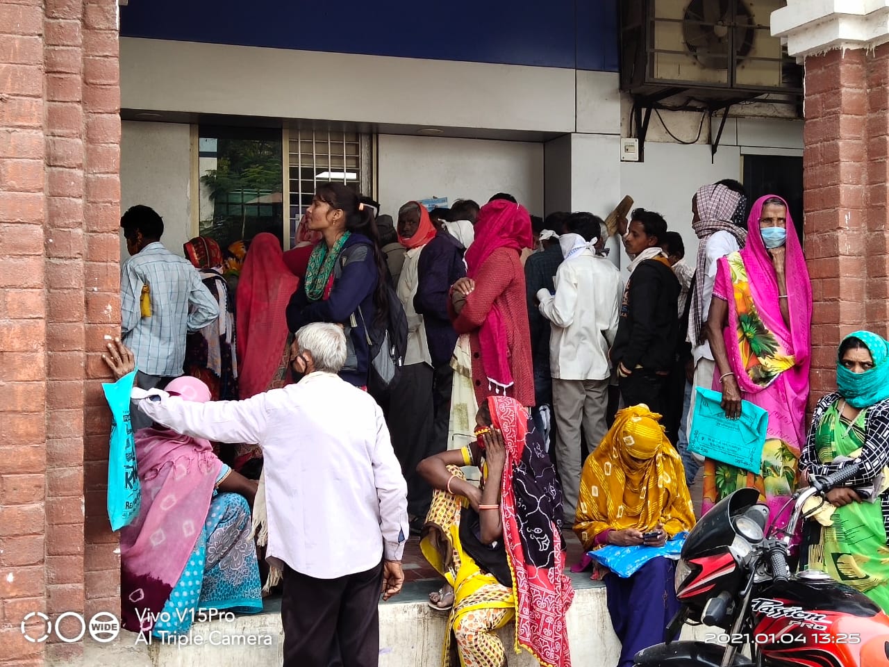 સંતરામપુર નગરમાં ભારતીય સ્ટેટ બેન્ક માં ખેડૂતોના ખાતામાં કેન્દ્ર સરકારે બે હજાર રૂપિયા નાખ્યા હતા 2000 રૂપિયા લેવા માટે આજે સવારથી જ ખેડૂતોની ભીડ જોવા મળી હતી અને લાંબી કતારો જોવા મળી હતી સરકાર ની ગાઈડ લાઈન મુજબ કોઈપણ પ્રકારનું નિયમનું પાલન કરવામાં આવ્યું હતું સોશિયલ distance પાલન કરવામાં આવેલ ન હતું ખેડૂતોને 2000 રૂપિયા લેવા માટે આખો દિવસ નાઇટમાં બનવું પડ્યું હતું આવી કોરોના મહામારીમાં ખેડૂતો 2000 રૂપિયા લેવા માટે મજબુર બન્યા અમને કોરોનાનો ડર લાગતો જ નથી.