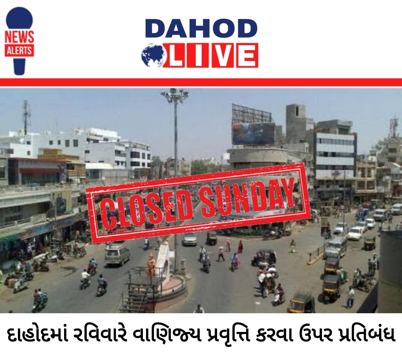 દાહોદમાં રવિવારે વાણિજ્ય પ્રવૃત્તિ કરવા ઉપર પ્રતિબંધ