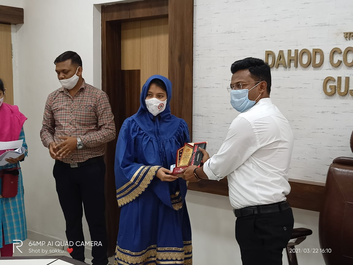 દાહોદની સકીના દુધિયા વાલા બીજા નંબર આવી મોમેન્ટ આપી સન્માન કરવામાં આવ્યું