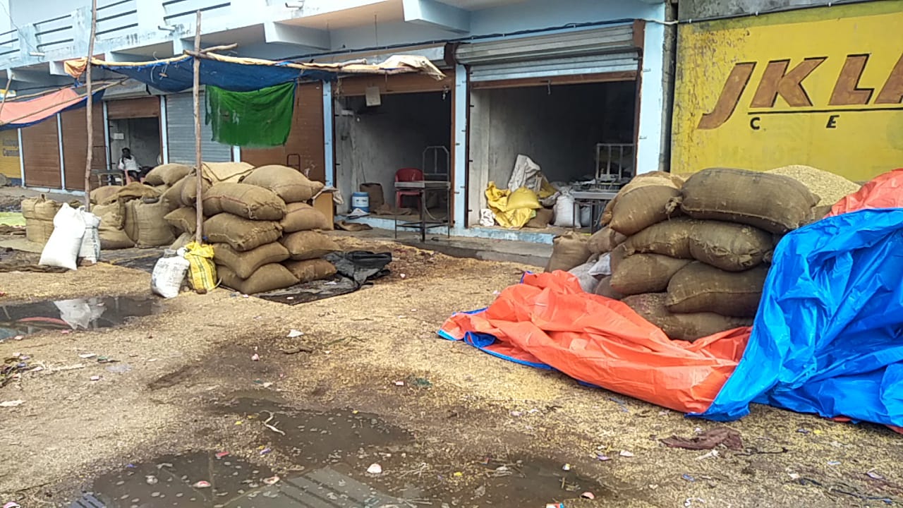 શેડ વગરના માર્કેટમાં બેસી વ્યાપાર કરતા વેપારીઓનો અનાજ વરસાદી માવઠામાં પલળી જતા લાખો રૂપિયાનું નુકસાન થયું હોવાનું અંદાજ