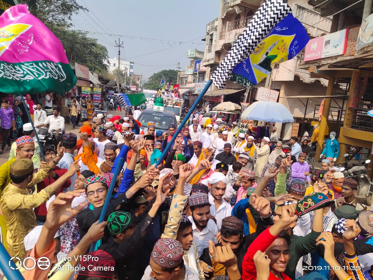 સંતરામપુર નગરમાં આજરોજ ઈદ-એ-મિલાદના પર્વે ધામધૂમથી ઉજવણી કરવામાં આવી હતી સવારથી જુમ્મા મસ્જિદ પાસે મુસ્લિમ બિરાદરો ભેગા મળીને એકબીજાને ઇદ-એ-મિલાદની મુબારક પાઠવી હતી અને જુલૂસ કાઢવામાં આવ્યું હતું આજરોજ તમામ મુસ્લિમ બિરાદરોને ભેગા મળીને નાત શરીફ પડતા પડતા જુલુસમાં જોડાયા હતા સંતરામપુર નગરના દરેક વિસ્તારોમાં જુમ્મા મસ્જિદ, હુસેની ચોક, સીભાઈ ચોક ટાવર રોડ ભોઈવાડા લુણાવાડા રોડ ગોધરા ભાગોળ દરેક વિસ્તારોમાં જુલુસ કાઢવામાં આવેલું હતું અને હર દેશ મે ગુંજે ગાયા રસુલલ્લાહ નારાથી સંતરામપુર નગર ગુંજી ઉઠ્યું હતું જૂલુસ દરમિયાન દરેક વિસ્તારોમાં ખાણીપીણીના સ્ટોલ લગાવવામાં આવેલા હતા શાંતિપૂર્ણ માહોલમાં ઇદ-એ-મિલાદની શાનદાર ઉજવણી કરવામાં આવી હતી જુમ્મા મસ્જીદના ઇમામે શાંતિ અમન માટે દુઆ પણ કરવા માટે જુમ્મા મસ્જિદ ના પ્રમુખ તથા અગ્રણીઓએ ઇદ-એ-મિલાદની કામગીરીમાં ભાગ લીધેલો અને અને જુલુસમાં ખડે પગે પોલીસ તંત્રએ ચુસ્ત બંદોબસ્ત રાખવામાં આવેલો તેમનું પણ આભાર વ્યક્ત કર્યો