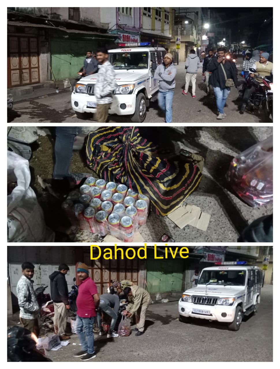 દાહોદ શહેર સહિત જિલ્લામાં ચોરી, ધાડ, લૂંટ, તેમજ વિદેશીદારૂની બદી વધવા પામી છે ત્યારે પોલીસ તંત્રે પણ વિદેશી દારૂની બદીને કડક રીતે ડામી દેવા કમર કસી છે.ત્યારે શહેર પોલીસના જવાનો આજરોજ સાંજના 8 વાગ્યાના અરસામાં પેટ્રોલીંગમાં નીકળ્યા હતા તે અરસામાં શહેરના ઠક્કર ફળીયા બિસ્મિલ્લાહ બેકરી નજીકથી મોટર સાઇકલ પર વિદેશી દારૂની હેરફેર કરવા નીકળેલા બે વ્યક્તિઓને પોલીસે અટકાવતા પોલીસ ને જોઈ દારૂ ભરેલી મોટર સાઇકલ દોડાવવા જતા ચાલકે મોટરસાઇકલ નું સંતુલન ગુમાવતા મોટરસાઈકલ પર થેલાઓમાં લાદેલો ભારતીય બનાવટનો રોયલ ચેલેન્જ વહીસ્કીના કવાટરીયા, હેવર્ડ 5000 ની બીયરના ટીન તેમજ ચાલુ ક્વાટરિયા સહિતનો હજારો રૂપિયાનું વિદેશી દારૂનો જથ્થો રોડ પર ઢોલાઈ જતા લોકોના ટોળાં ભેગા થઇ હતા. જોકે મોટરસાઇકલ ચાલક પોલીસને ચકમો આપી ભાગી છૂટવાંમાં સફળ રહ્યો હતો ત્યારે દાહોદ શહેર પોલીસે વિદેશી દારૂના જથ્થા સાથે એક વ્યક્તિની અટકાયત કરી હજારો રૂપિયાનો વિદેશીદારૂનો જથ્થો જપ્ત કરી આગળની કાર્યવાહી હાથ ધરી છે.