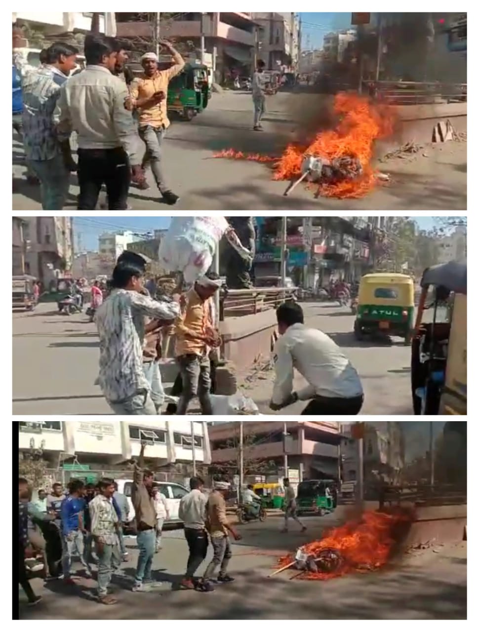 દાહોદ શહેરના ભગિની સમાજ ચોકમાં રાજ્યના નાયબ મુખ્યમંત્રી નીતિન પટેલ તેમજ દે.બારીઆના ધારાસભ્ય અને રાજ્યકક્ષાના મંત્રી બચુભાઈ ખાબડનું દાહોદના આદિવાસી સમાજના યુવાનો દ્વારા પૂતળા દહન કરવામાં આવતા ચકચાર મચી જવા પામી છે.