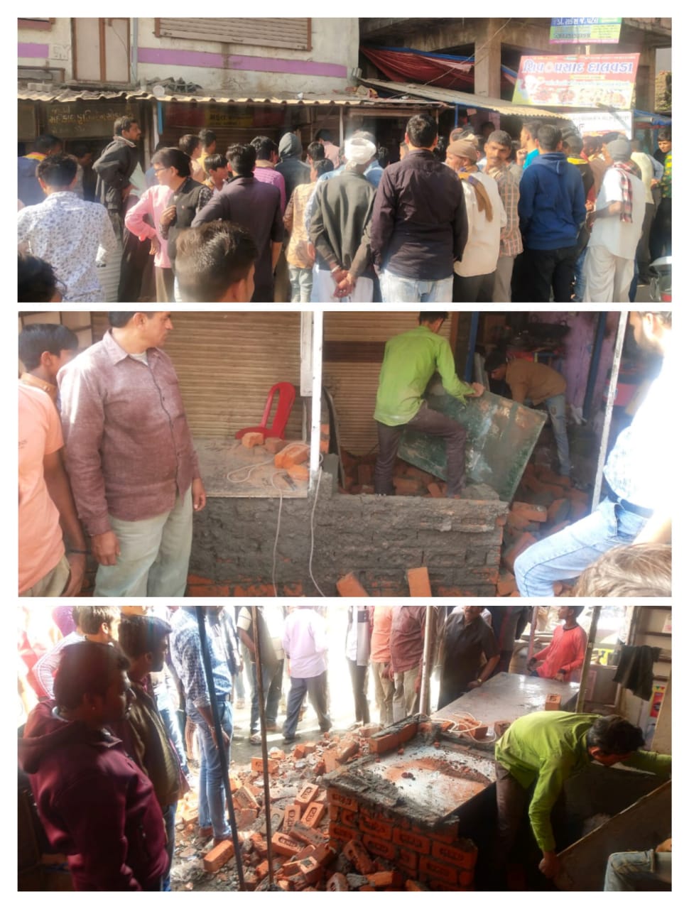 ફતેપુરા ગ્રામ પંચાયતની જમીનમાં કરવામાં આવ્યું દબાણ દુર કરતું ગ્રામ પંચાયત ફતેપુરા કામેશ્વર મહાદેવ ની સામે આવેલ વ્યાસ અનુભાઈ ના મકાનની આગળ દુકાન બનાવવા માટે પંચાયતની’ જગ્યામાં દબાણ કરવામાં આવ્યું હતું જે આજરોજ પંચાયતના સભ્યો તેમજ ડેપ્યુટી સરપંચ ભેગા થઈને દબાણ કરતા ને અટકાવી દબાણ સ્થળ ઉપર તોડી પાડવામાં આવ્યું હતું મોટી સંખ્યામાં ગ્રામજનો ભેગા થયા હતા કામેશ્વર મંદિરની સામે વ્યાસ અનુભાઈ નું મકાન આવેલું છે મકાનની આગળ દુકાન બનાવી તે દુકાનો માટે પંચાયતની જમીનમા આગળ રસ્તાની નજીક પંચાયત ને જાણ કર્યા વગર બાંધકામ કરતા હતા પંચાયતને જાણ થતાં પંચાયતના સભ્ય તેમજ ડે સરપંચ સ્થળ ઉપર જતા ગેરકાયદેસર દબાણ કરતા હતા તેમને અટકાવી તતકાલીન દબાણ દૂર કરી નાખી તેની હદ મા બાંધકામ કરવા જણાવ્યું હતું ત્યારે પંચાયત ને કોઈ પણ પ્રકારની પરવાનગી લીધા વગર પંચાયત ની જમીન પર બાંધકામ તેમજ દબાણ કરતા જણાતા બાંધકામ તોડી પાડવામાં આવ્યું હતું તેમ ગ્રામ પંચાયત ના સભ્ય વિશાલભાઈ નાહરે ફતેપુરાએ જણાવ્યું હતું.