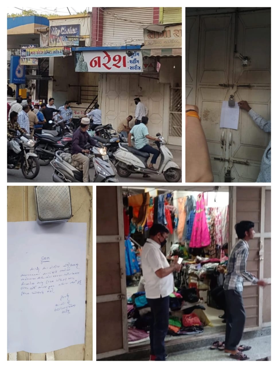દાહોદ શહેરમાં સવારથી જ પાલિકા તંત્ર તેમજ વહીવટી તંત્ર દ્વારા દુકાનો બંધ કરવાના એલાનો કરી દેવામાં આવ્યા છે ત્યારે આ વચ્ચે શહેરમાં આવેલ નરેશ નામક કાપડનો દુકાનદાર પોતાની દુકાનને અડધી બંધ રાખી વેપાર ધંધો કરતો હોઈ આ બાબતની જાણ પાલિકા તંત્રને થતાં ત્યા આવી પહોંચી હતી. જાણવા મળ્યા અનુસાર, આ પહેલા આજે આ દુકાનદારને પાલિકા તંત્ર દ્વારા બંધ રાખવા અનેકવાર ટકોર પણ કરી હતી પરંતુ આ દુકાનદાર ટસનો મસ ના થઈ દુકાન ચાલુ રાખતા આખરે પાલિકા તંત્ર દ્વારા ભારે આક્રોશ સાથે આ દુકાનને ૩૧મી માર્ચ સુધી સીલ કરી દેવાતાં પંથકમાં ખળભળાટ મચી જવા પામ્યો છે. આવી જ રીતે ભોઈવાડામાં પણ એક કાપડના દુકાનદારને નોટીસ તેમજ દંડ ફટકારી દંડનીય કાર્યવાહી કરવામાં આવી હતી.