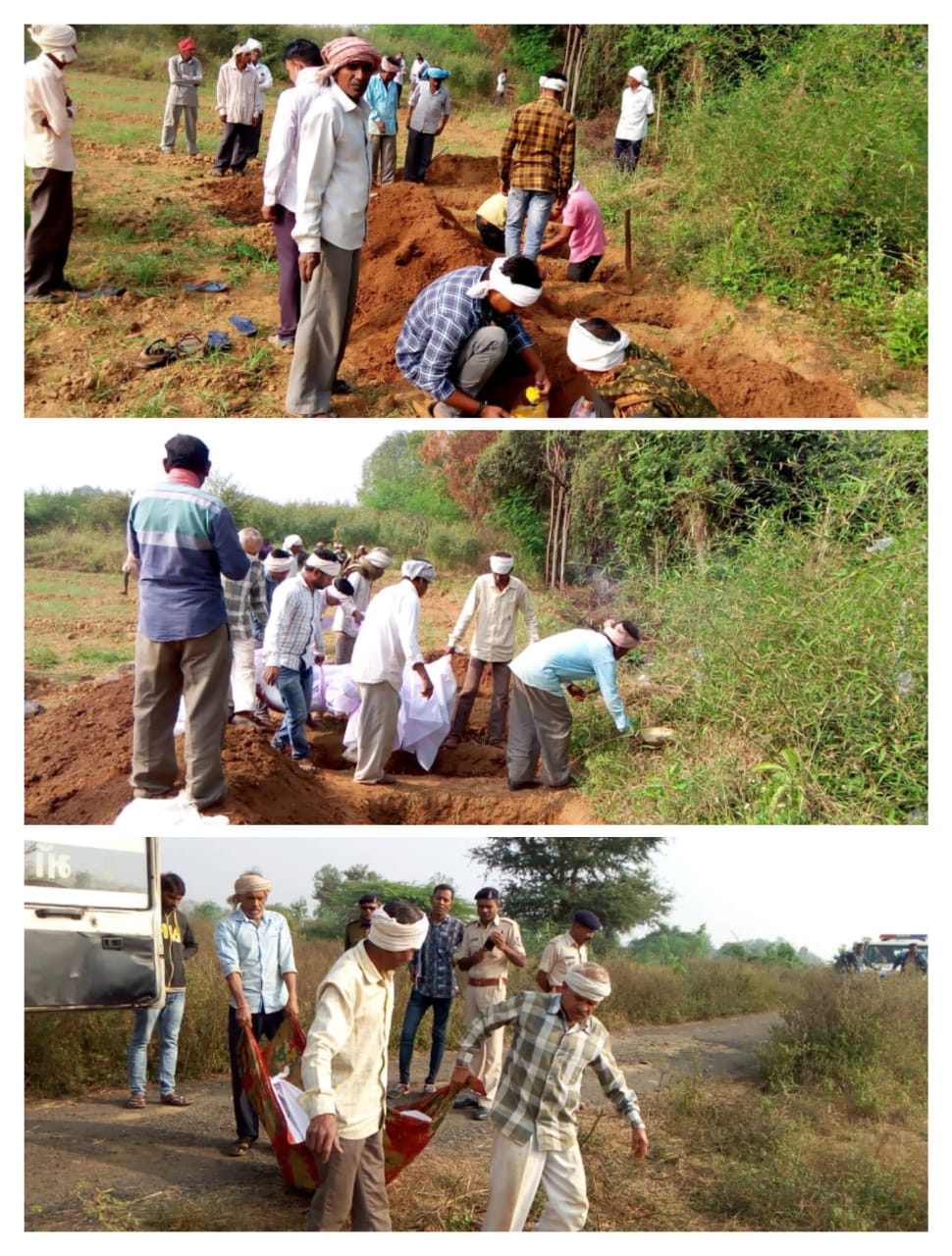 - દાહોદ જિલ્લાના સંજેલી તાલુકાના તરકડા મહુડી ગામે સર્જાયેલ એક પરિવારના ૬ સભ્યોના સામુહિક હત્યાંકાડમાં પોલીસ તંત્ર સહિત ટીમો કામે જોતરાઈ છે ત્યારે બીજી તરફ આ ઘટના બાદ આજરોજ પરિવારના નિવાસ્થાને તેમના સગા સંબંધીઓએ એક દંપતિ સહિત ૪ બાળકોની અંતિમ વિધિ માટે તેઓના ખેતરમાં સાત ખાડાઓ ખોદી ૬ જણાની દફનવિધિ કરવામાં આવી હતી જ્યારે મોરબી મુકામે ટ્રેનની નીચે કપાયેલ તેમના પરિવારના વધુ એક સભ્યના મૃતદેહને લેવા પરિવારજનો મોરબી જવા રવાના થયા હતા.