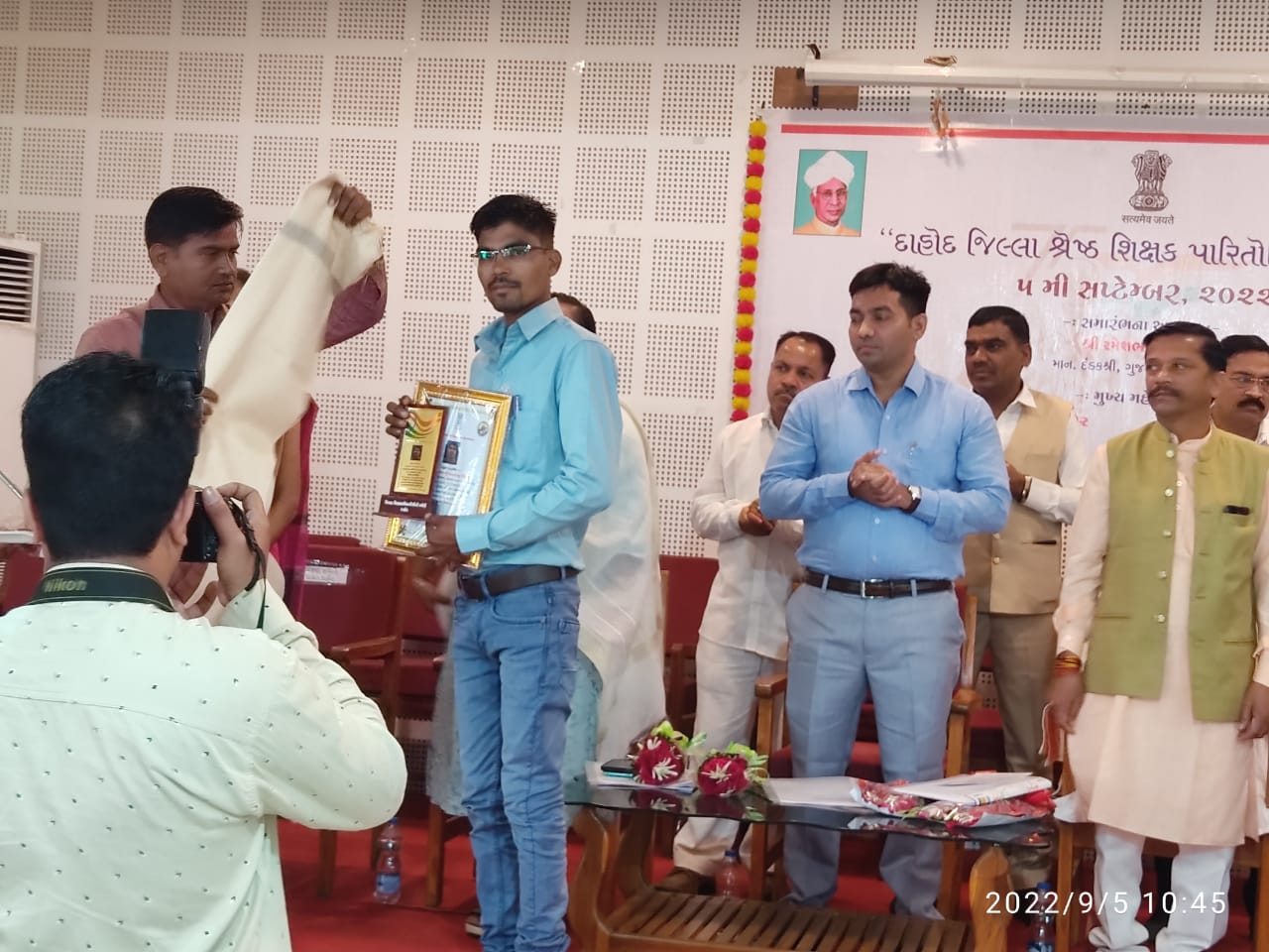 5 મી સપ્ટેમ્બર 2022 , ડૉક્ટર સર્વપલ્લી રાધાકૃષ્ણના માનમાં યોજાતા શિક્ષક દિનની ઉજવણી અંતર્ગત દાહોદ જિલ્લા કક્ષાએ જિલ્લા કક્ષાના શ્રેષ્ઠ શિક્ષક તરીકે 4 શિક્ષકશ્રી ઓ અને તાલુકા શ્રેષ્ઠ શિક્ષક તરીકે 11 શિક્ષકશ્રીઓ નું બહુમાન કરવામાં આવ્યું શિક્ષક દિન નિમિત્તે જિલ્લા અને તાલુકા “શ્રેષ્ઠ શિક્ષક “પારિતોષિક એનાયત કાર્યક્રમ માનનીય દંડક શ્રી રમેશભાઈ કટારા સાહેબ ,સાંસદ શ્રી જશવંતસિંહ ભાભોર સાહેબ, જિલ્લા પંચાયત દાહોદ પ્રમુખશ્રી સુશ્રી શીતલ કુમારી બી. વાઘેલા ,કલેકટર શ્રી હર્ષિત પી ગોસ્વામી સાહેબ ,જિલ્લા વિકાસ અધિકારી સુશ્રી નેહા કુમારી જી, જિલ્લા પ્રાથમિક શિક્ષણ અધિકારી એમ. એસ. પારેખ સાહેબ, જિલ્લા શિક્ષણાધિકારી કે.જી દવે મેડમ ની ઉપસ્થિતિમાં દાહોદ ખાતે યોજાયો હતો. જેમાં શિક્ષણ ક્ષેત્રે ઉત્કૃષ્ટ કામગીરી કરનાર 15 જેટલા શિક્ષકોને શાલ, સ્મૃતિચિન્હ ,પ્રશસ્તિપત્ર અને ચેક આપી સન્માનિત કરવામાં આવ્યા હતા. દેવગઢબારિયા તાલુકામાંથી બે શિક્ષકશ્રીઓ શ્રી સંજય કુમાર ગુલાબસિંહ ચૌહાણ , રૂવાબારી મુવાડા પ્રાથમિક શાળા અને શ્રીમતી રેણુકાબેન ભીખાભાઈ પટેલ મોટી ખજૂરી પ્રા. શાળા નું તાલુકા શ્રેષ્ઠ શિક્ષક તરીકે સન્માન કરવામાં આવ્યું હતું.