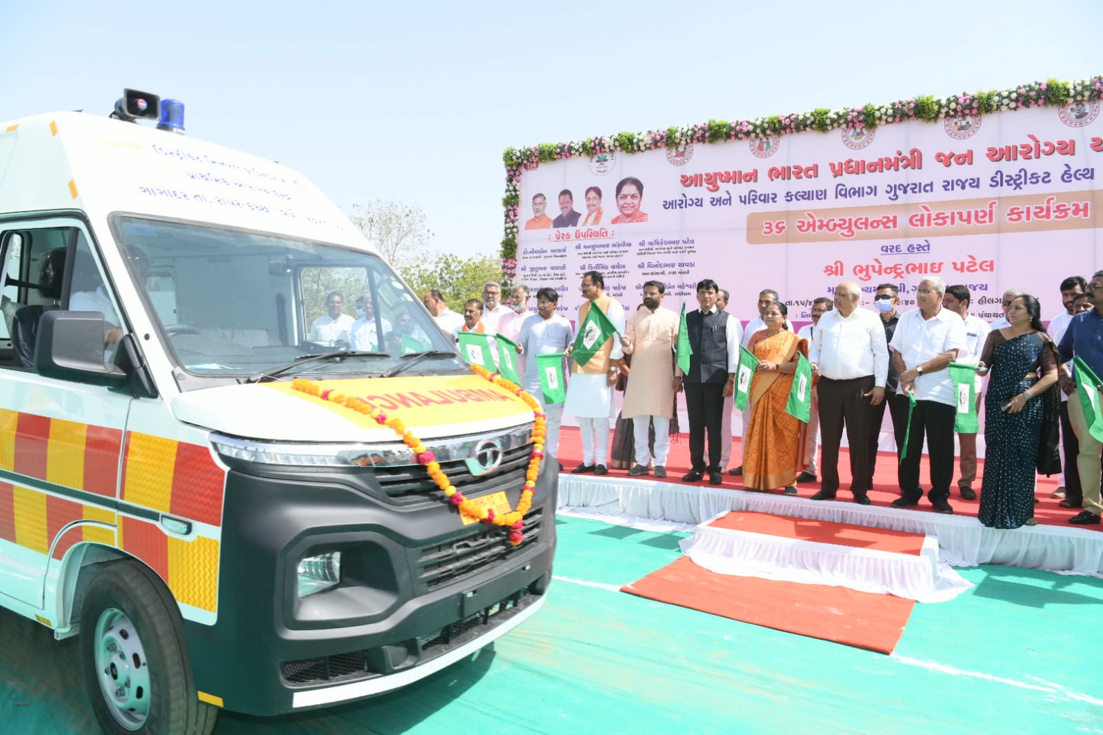 મુખ્યમંત્રીશ્રીએ રૂ.૫.૩૧ કરોડના ખર્ચે ખરીદાએલ ૩૬ આરોગ્ય એમ્બ્યુલન્સને લીલીઝંડી આપી