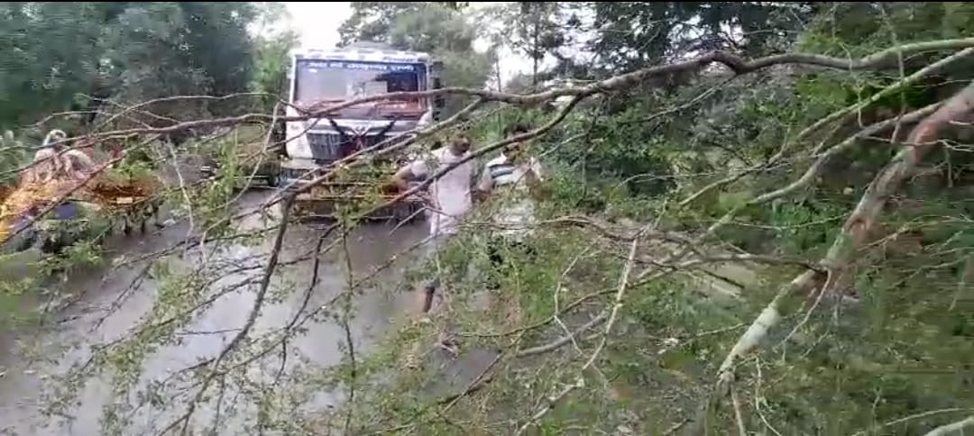 સમસ્ત આદિવાસી સમાજ,ખેરગામ તાલુકા દ્વારા ધરમપુર-લાકડમાળ નેશનલ હાઇવે પર વૃક્ષ કાપી ટ્રાફિક ખુલ્લો કરાયો.