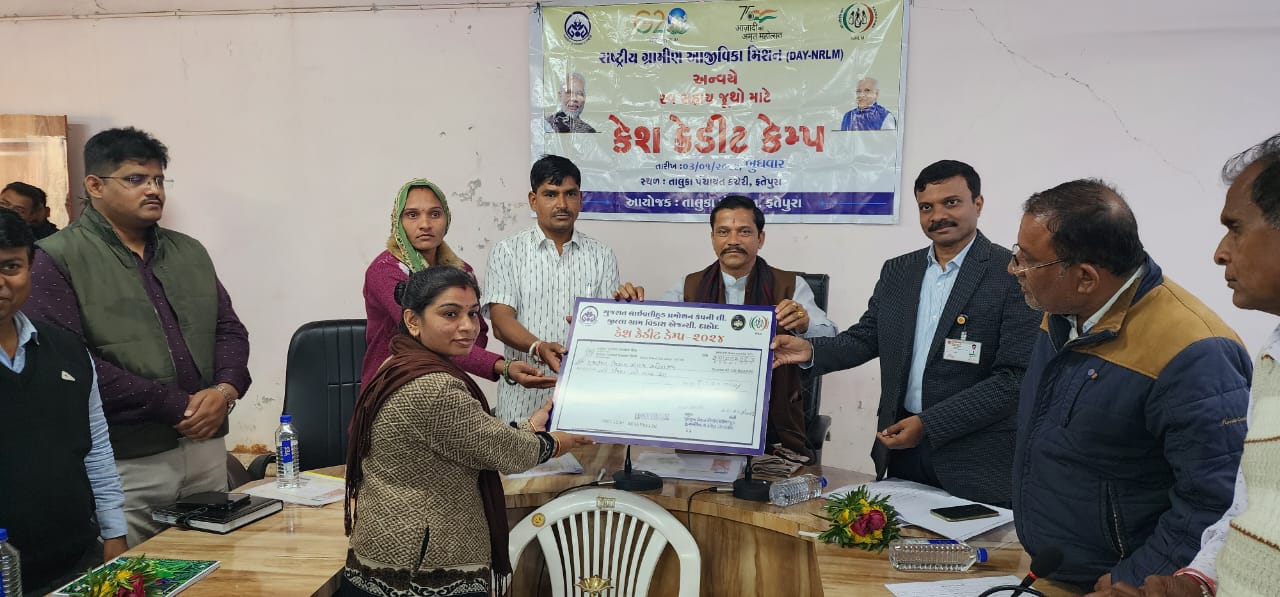 ફતેપુરા ખાતે ફતેપુરા તથા સંજેલી તાલુકાનો રાષ્ટ્રીય ગ્રામીણ આજીવિકા મિશન દ્વારા કેશ ક્રેડિટ કેમ્પ યોજાયો* *ફતેપુરા તાલુકા ની 63 તથા સંજેલી તાલુકા ની ૪૦ જેટલા સખી મંડળના મહિલા સ્વ સહાય જૂથો ને ૧.૮૪ કરોડ ના ચેક વિતરણ કરાયા*