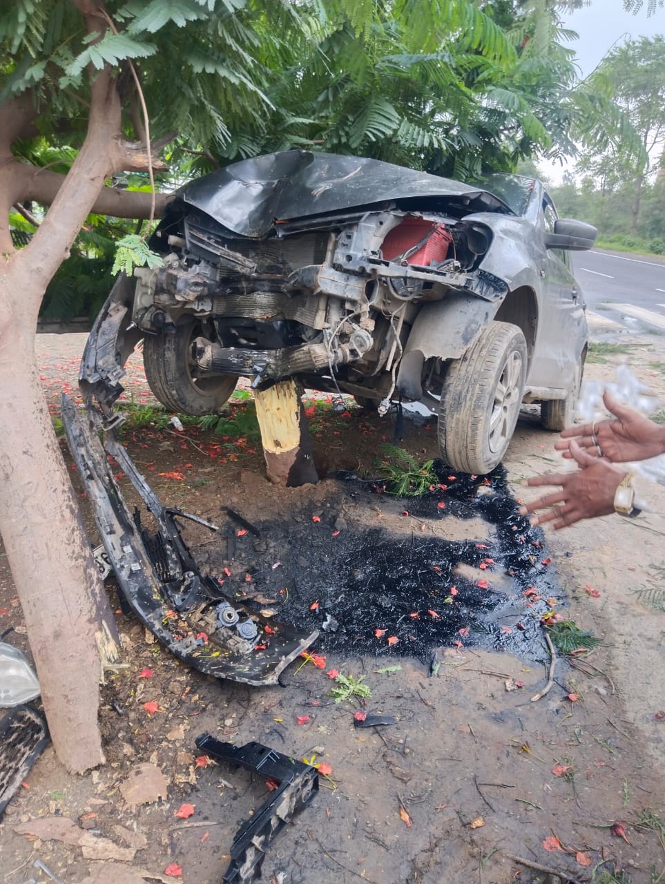 ફતેપુરા તાલુકાના મોટા નટવા ગામે ફોરવીલર ગાડી ની અડફેટે મોટરસાયકલ સવાર ત્રણ ઈસમો ફંગોળાયા:એકનું મોત..