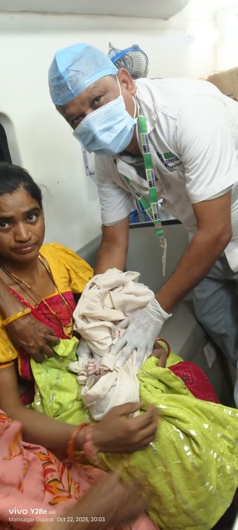 સુખસર સી.એચ.સી 108 એમ્બ્યુલન્સના કર્મચારીઓએ રસ્તામાં સફળતાપૂર્વક પ્રસુતાની ડીલીવરી કરાવી* *સુખસર સી.એચ.સી માંથી પ્રસુતાને લોહીની ઉણપ તથા હાઈ બી.પી ના કારણે રિફર કરવામાં આવેલ હતી*