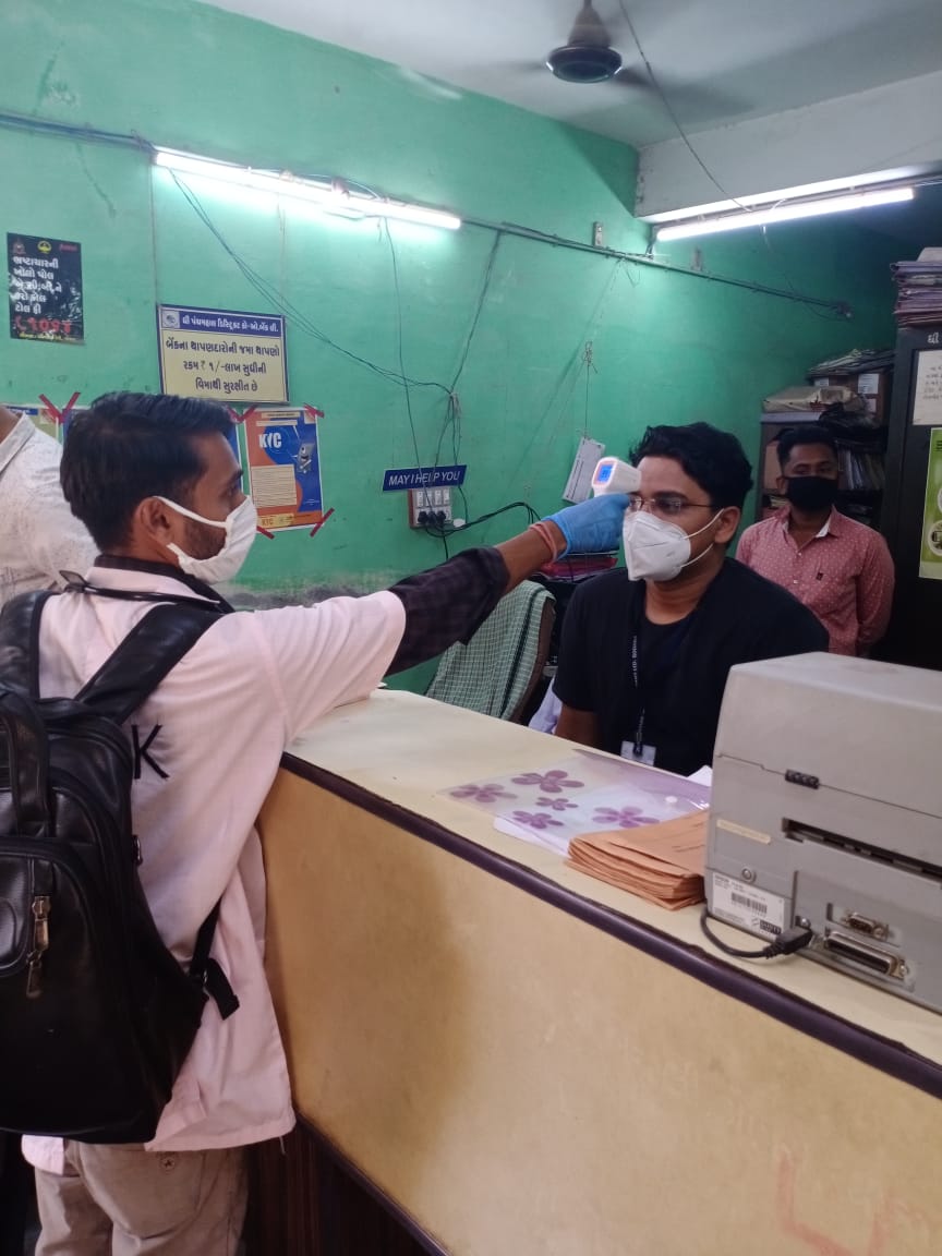 સિંગવડ તાલુકામાં સરકારી બેન્કોના સરકારી કર્મચારીઓનો થર્મલ સ્કેનિંગ કરવામાં આવ્યું