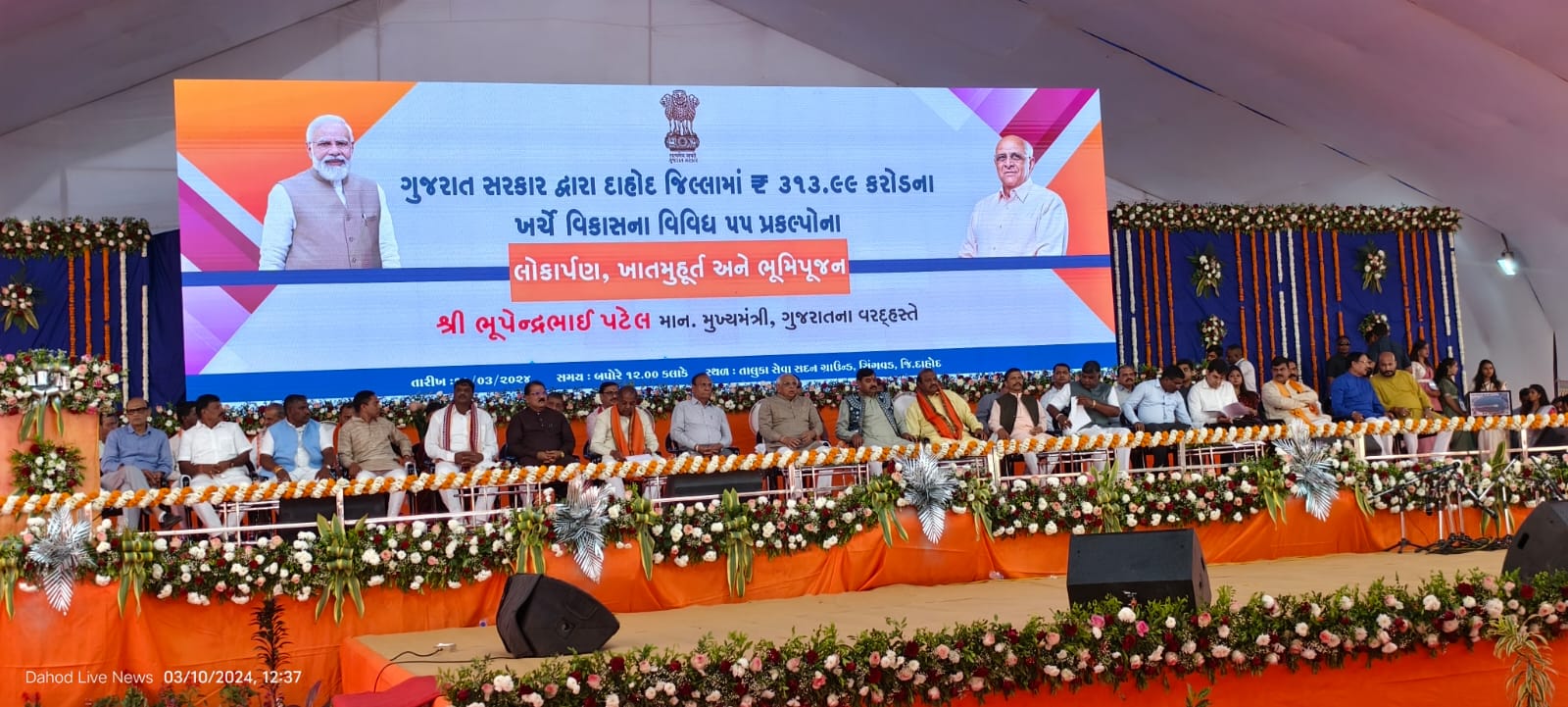 દાહોદમાં મુખ્યમંત્રીની ઉપસ્થિતિમાં 300 કરોડ ઉપરાંતના વિકાસ પ્રકલ્પોના લોકાર્પણ શિલાન્યાસ કાર્યક્ર્મ યોજાયા..