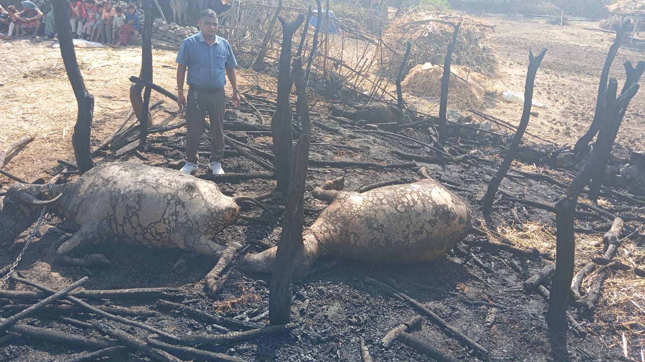 ઝરીબુઝર્ગ ગામે પશુ બાંધવાના મકાનમાં આકસ્મિક આગ લાગતાં ૨ ભેંસ, ૧ બળદનું મોત;૨ભેંસ ગંભીર.