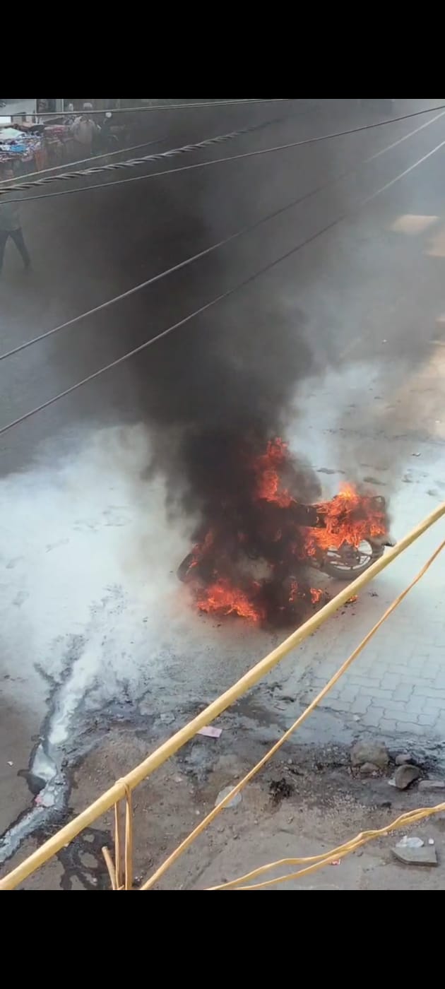 દાહોદના માણેકચોક કાળાભાઈ પેટ્રોલ પંપ નજીક ટુ વ્હીલર ગાડીમાં આગથી દોડધામ, ફાયર બિગડે આગ ઓલવી