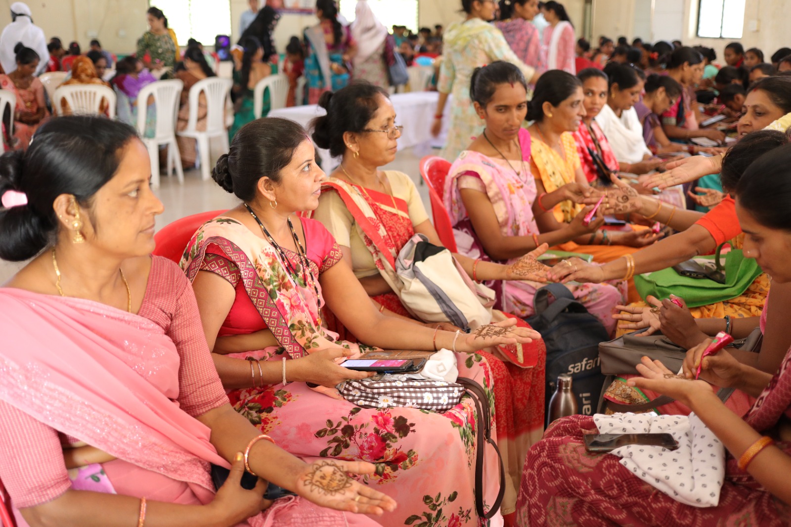 મહિલા મતદાતાઓએ પોતાના હાથમાં “મારો મત, મારો અધિકાર”ના સ્લોગનની મહેંદી મુકાવી
