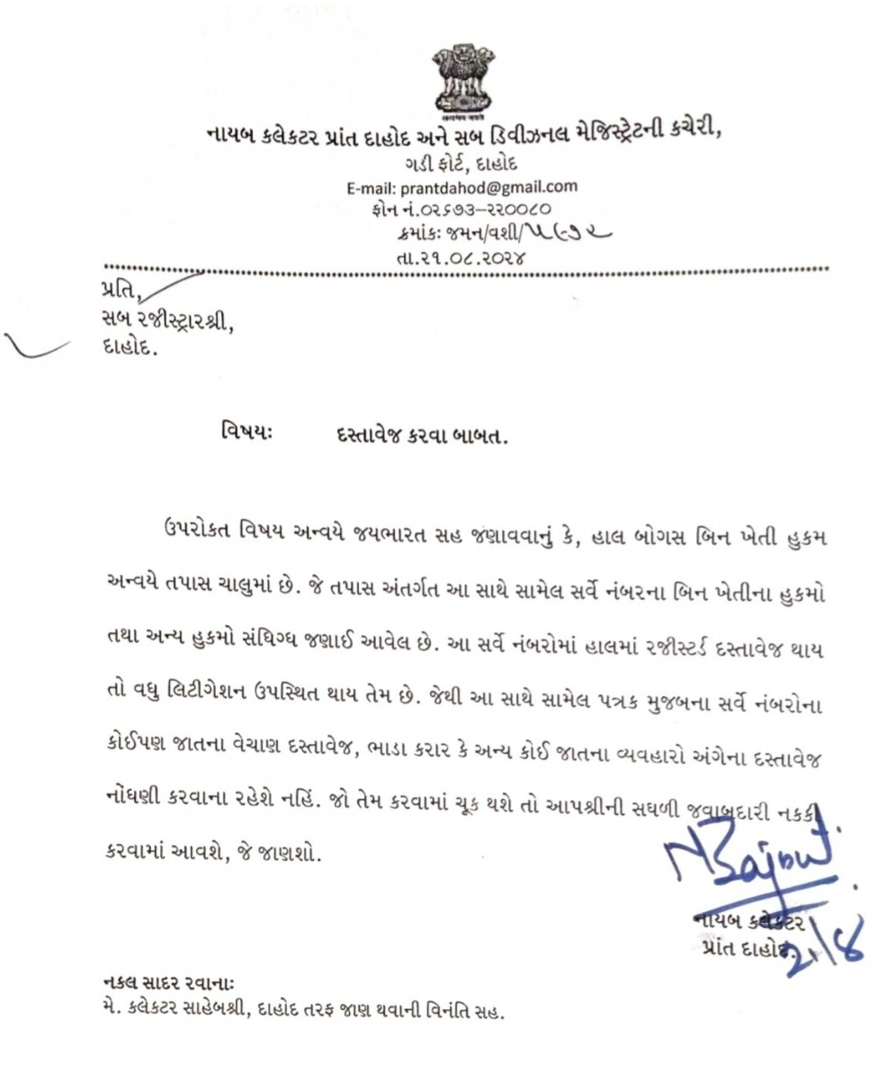 રાજેશ વસાવે :- દાહોદ કાલિતળાઈ પાસે આવેલ જમીનમાં NA ના નકલી હુકમ…