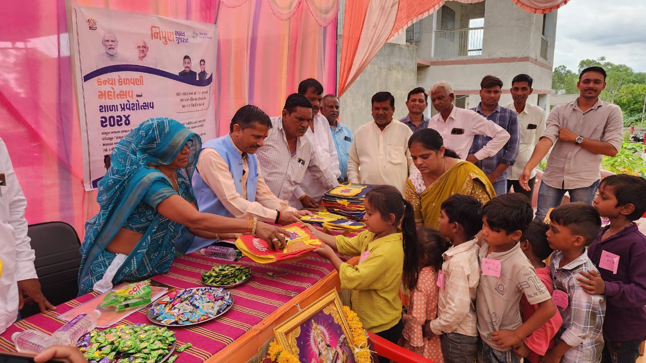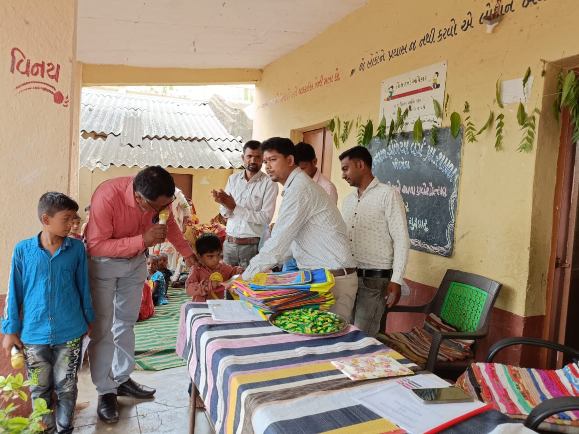 સંજેલી તાલુકાના વાંસિયા ઢેઢીયા નેનકી ખાતે પ્રાથમિક શાળામાં બાળકોને પ્રવેશોત્સવ કરાવતા ધારાસભ્ય રમેશભાઈ કટારા