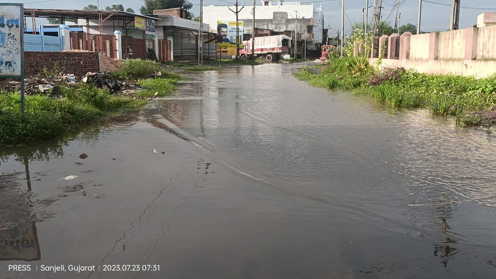 સંજેલી નગરમાં પુષ્પ સાગર તળાવ ઓવરફ્લોર થતા કૃષ્ણકુંજસોસાયટી જળબંબાકાર. જીબોટા નદી, ભાબરી નદી, કુંડાનદી, સમુંદર તળાવ ઓવરફ્લો વિવિધ માર્ગો પર વૃક્ષ ધરારાસાઈ થતાં રસ્તા બંધ..
