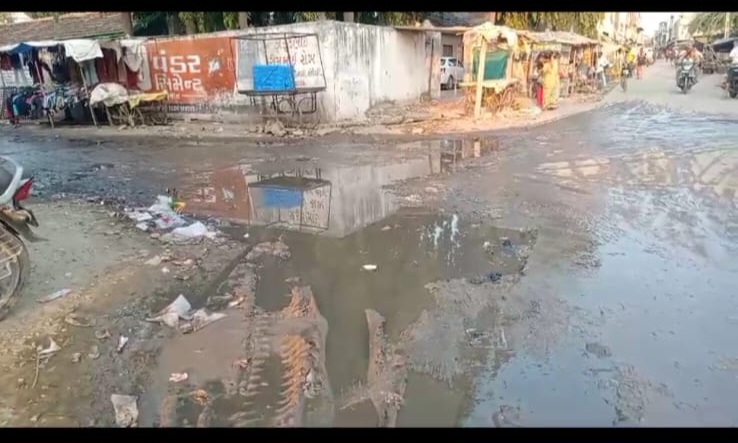 નગરના મુખ્યમાર્ગો પર તકલાદી પેચિગ વર્ક થી કાદવ કીચડનો સામ્રાજ્ય :વાહન ચાલકો પરેશાન