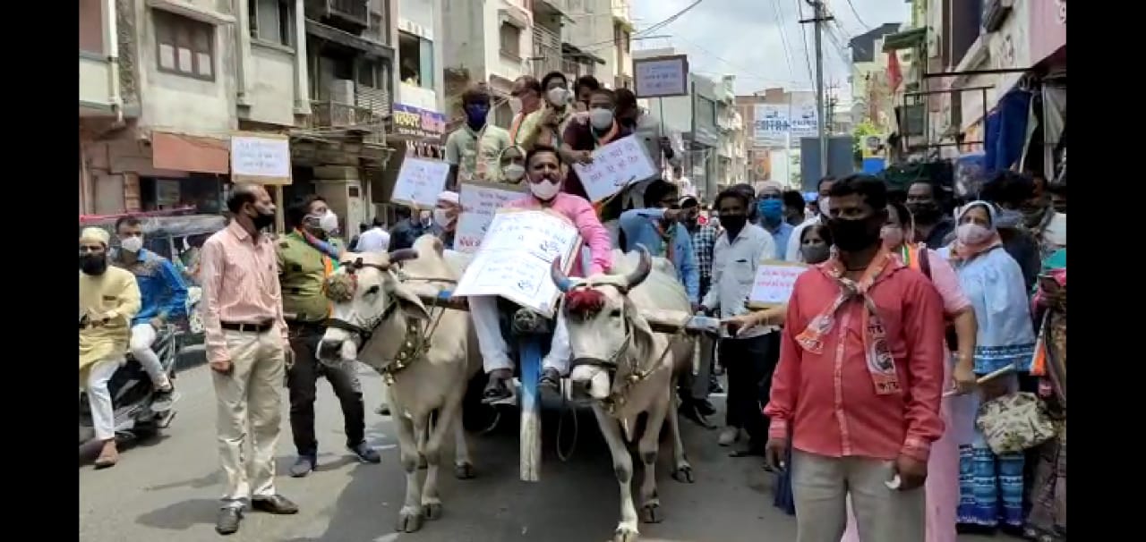 પેટ્રોલ, ડીઝલના ભાવાનોમાં પણ ઐતિહાસીક સતત વધારો થઈ રહ્યો છે. આજરોજ દાહોદ જિલ્લા કોંગ્રેસ સમિતિ દ્વારા વધતાં ભાવોનેના વિરોધમાં વિરોધ પ્રદર્શનનું આયોજન કરવામાં આવ્યું હતું. કોંગ્રેસ સમિતિના આગેવાનો દાહોદ તાલુકા પંચાયત ખાતે એકત્રીત થયાં હતાં ત્યાંથી બળદ ગાડા પર ભવ્ય રેલી શહેરમાં નીકળી હતી. આ રેલી તાલુકા પંચાયતથી યાદગાર ચોક થઈ નગરપાલિકા પહોંચી હતી અને ત્યાં સરકાર વિરોધી ભારે સુત્રોચ્ચાર કરવામાં આવ્યાં હતાં.