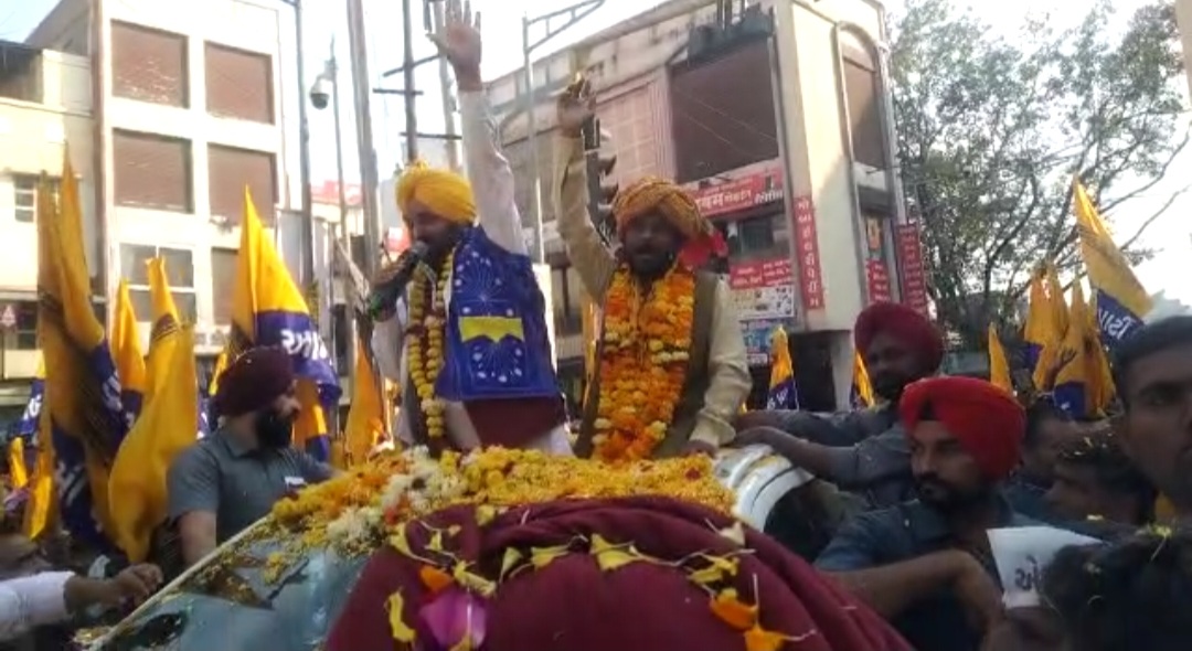 ભગવંત માને ફતેપુરા તેમજ ઝાલોદ ખાતે વિશાળ સંખ્યામાં ભેગી થયેલી આમ આદમી પાર્ટીના કાર્યકર્તાઓ સાથે ભવ્ય રોડ શો યોજ્યો..