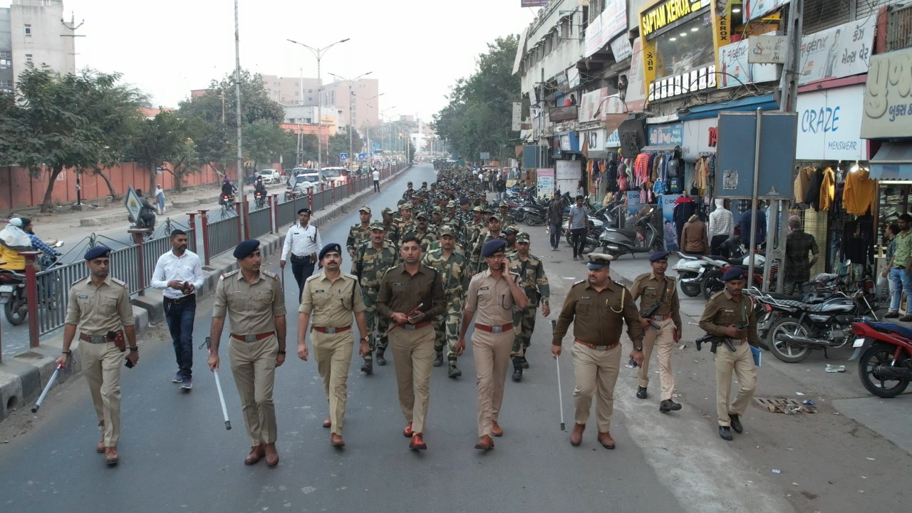 દાહોદ જિલ્લાની કુલ છ વિધાનસભા બેઠકો પર સેનાના જવાનો સાથે પોલીસે ફ્લેગ માર્ચ યોજી..