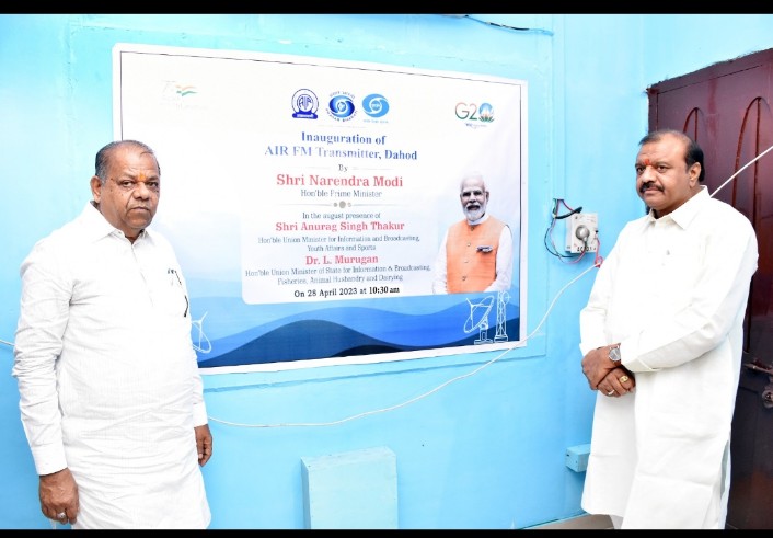 વડાપ્રધાન શ્રી નરેન્દ્રભાઇ મોદીના વરદહસ્તે આજે દાહોદ સહિત દેશમાં કુલ ૯૧ જેટલાં ઓલ ઇન્ડિયા રેડીયો એફ.એમ. ટ્રાન્સમિટરનું વર્ચ્યુઅલી લોકાર્પણ કરવામાં આવ્યું છે. આ પ્રસંગે દાહોદ નગરના પોલીસ તાલીમ ભવન ખાતે રાજ્ય મંત્રીશ્રી બચુભાઈ ખાબડ અને સાંસદશ્રી જશવંતસિંહ ભાભોર સહિતના પદાધિકારીશ્રીઓ તેમજ અધિકારીશ્રીઓની પ્રેરક ઉપસ્થિતિમાં દાહોદ રેડીયો એફ.એમ.ટ્રાન્સમિટરનું લોકાર્પણ કરાયું હતું.