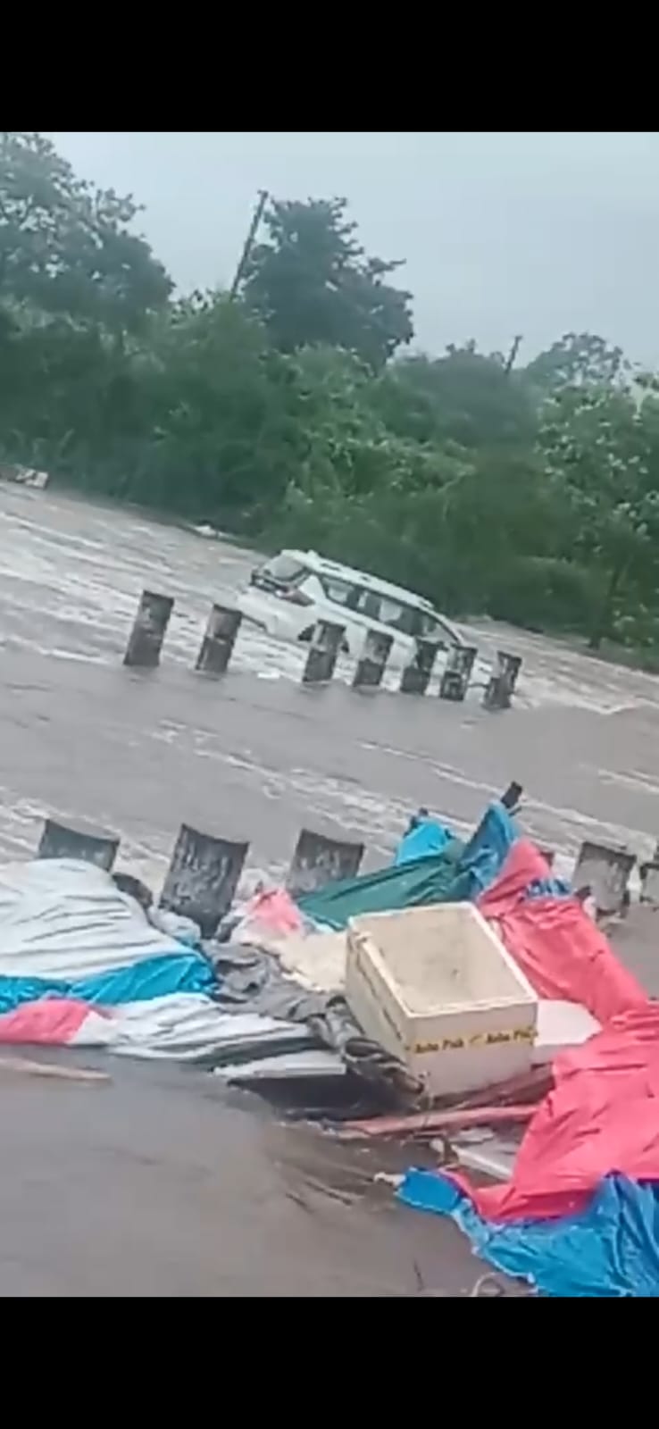 ગાડીમાં સવાર પિતા પુત્ર તથા અન્ય એક નો એન.ડી.આર.એફ ની ટીમ દ્વારા રેશ્ક્યુ કરી સહી સલામત બહાર કાઢયા