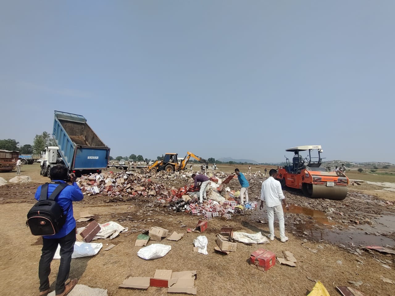 રણધીપુર પોલીસ સ્ટેશનમાં ઇંગ્લિશ દારૂ તથા બિયર ના ટીન ગુનામાં પકડાયેલો ના કુલ ગુના 42 થયા હતા તેમાં 6079 નંગ બિયર તથા ઇંગ્લિશ દારૂની બોટલો મળી તેના રૂપિયા 9,34,516 નો મુદ્દા માલ રણધીપુર પોલીસ સ્ટેશન થી દેવગઢ બારીયા ના શિગેડી ગામે ટ્રકમાં રણધીપુર પોલીસ સ્ટેશન ના પી.એસ.આઇ એમ.એમ. માલી સાથે રાખીને લઈ જવામાં આવ્યો હતો જ્યારે આ મુદ્દામાં શિગેડી પહોંચતા મદદનીશ પોલીસ અધિક્ષક લીમખેડા ડિવિઝન ના બીશાખા બેન જૈન પ્રાંત ઓફિસર બી.જી. નિનામા નશાબંધી અને આવકારી અધિકારી દાહોદ એમ.બી.વાઘેલા તથા તમામ થાણા ડિવિઝન અધિકારીઓ તથા નાયબ મામલતદાર શ્રી ઓ દ્વારા વગેરેની ઉપસ્થિતિમાં આ ઇંગ્લિશ દારૂનો જથ્થો નાશ કરવામાં આવ્યો હતો.