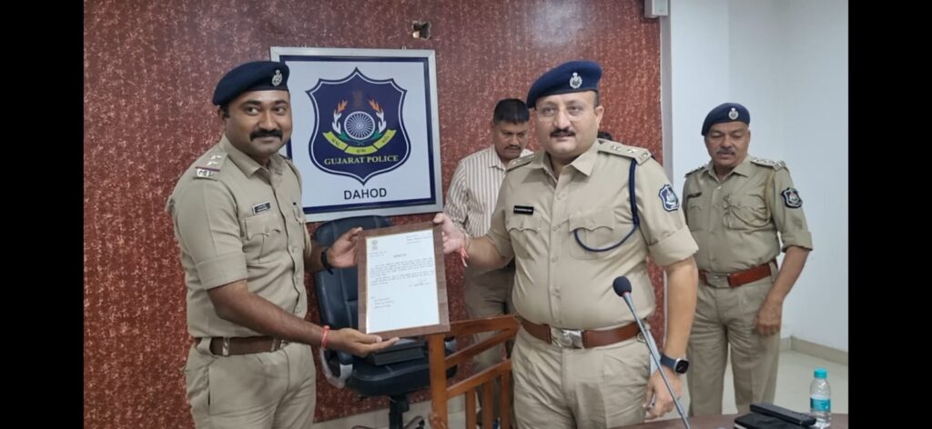 ગત તારીખ 31.10.2023 ના રોજ નર્મદા જિલ્લાના કેવડિયા ખાતે યોજાયેલી નેશનલ એકતા પરેડમાં કમાન્ડર ની ભૂમિકા નિભાવી રાષ્ટ્રીય સ્તરે ગૌરવ વધારવા બદલ, લીમખેડા ડિવિઝનના એ.એસ.પી વિશાખા જૈન ને દાહોદમાં બહુચર્ચિત મિલાપ શાહ મર્ડર કેસમાં ખૂબ જ ખંતથી કામ કરી ગુનો ડિટેક્ટ કરવા તેમજ મુદ્દામાલ રિકવર કરવામાં મહત્વપૂર્ણ ભૂમિકા ભજવવા બદલ, એલસીબી શાખાના પીઆઇ કે.ડી. ડીંડોરને છેલ્લા બે માસના ટૂંકા ગાળામાં કુલ 38 જેટલા નાસ્તા ફરતા આરોપીઓની ધરપકડ કરી 35 વર્ષથી ભરૂચ તેમાં