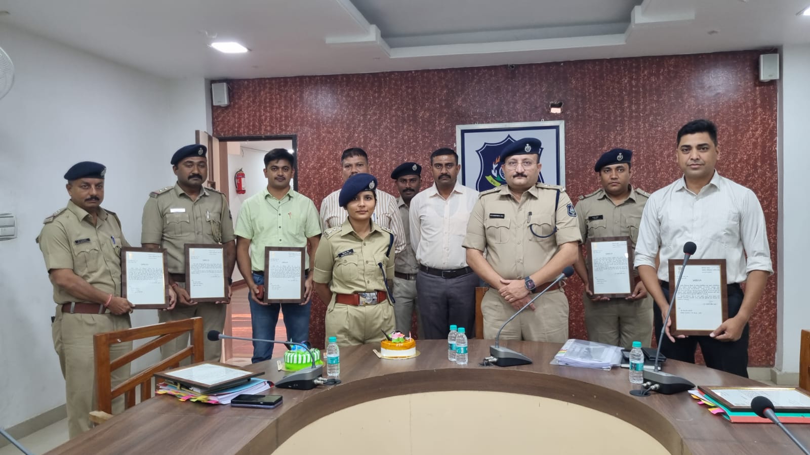 એલસીબી શાખામાં પોલીસ કોન્સ્ટેબલ તરીકે ફરજ બજાવતા દીપકભાઈ મિનેષભાઈને આંતરરાજ્ય ઘડપણ ચોરી તેમજ મોટરસાયકલ ચોરીના કુલ 13 ગુનાઓને શોધી આરોપીઓને ઝડપી તેમની પાસેથી 10 જેટલી મોટરસાયકલ રિકવર કરવા બદલ, દાહોદ રૂલર પોલીસ મથકમાં એ.એસઆઇ તરીકે ફરજ બજાવતા સંજયભાઈ ધીરુભાઈને તાજેતરમાં માનવ તસ્કરીના ગુનાનો ભેદ ઉકેલવામાં મહત્વપૂર્ણ કામગીરી કરવા બદલ, તેમજ એલસીબી શાખામાં પોલીસ કોન્સ્ટેબલ તરીકે ફરજ બજાવતા દિનેશભાઈ સહદેવ ભાઈ ને ઘર પર ચોરી તેમજ શાળાઓની ચોરી, તથા પ્રોહીબિશનના નાસ્તા ફરતા આરોપીઓને ઝડપી પાડવા તથા જિલ્લામાં દાખલ થયેલ ઈએફઆઈઆરમાં ગુમ થયેલ મોબાઈલ ફોન શોધી કાઢી મૂળ માલિકોને પરત સોંપવામાં ઉત્કૃષ્ટ કામગીરી બદલ પ્રશસ્તી પત્ર એનાજ કરી સન્માનિત કરવામાં આવ્યા હતા.
