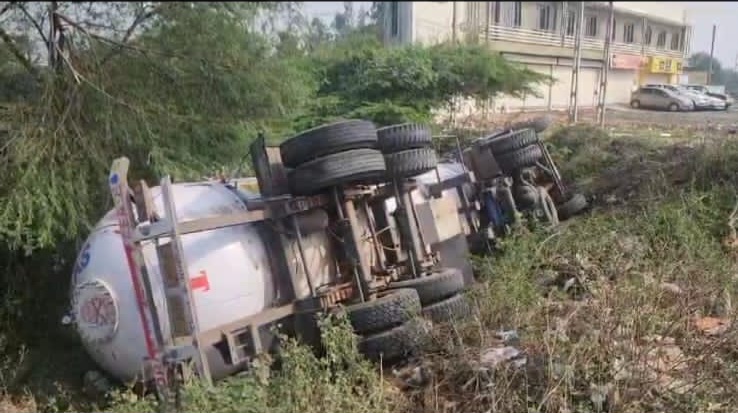 દહેજથી ઇન્દોર જતું એલપીજી ગેસ ભરેલું ટેન્કર મુવાલિયા ક્રોસિંગ પર પલટી માર્યું : સદભાગ્યે કોઈ જાનહાની નહીં.