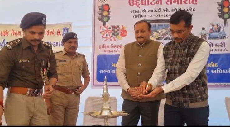 દાહોદમાં માર્ગ સલામતી માસ 2024નો ભવ્ય ઉદઘાટન સમારોહ દાહોદ ARTO કચેરી ખાતેયો જાયો હતો