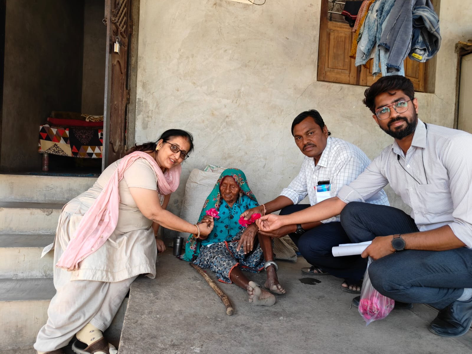 80 વર્ષ વટાવી ચૂકેલા મતદારોનું મામલતદાર તથા સુપરવાઇઝર દ્વારા ગુલાબનું ફૂલ આપી સ્વાગત કરાયું