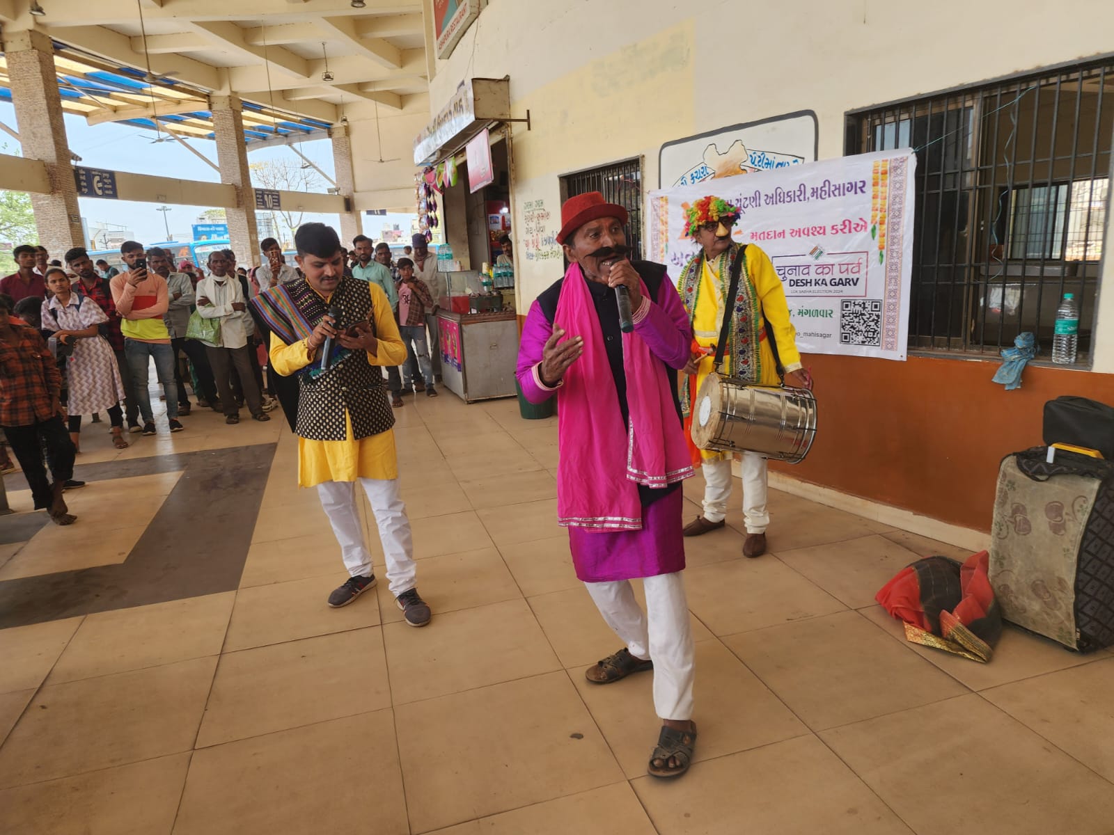 લોકસભા ચુંટણીમાં મહત્તમ મતદાન થાય તે માટે મહીસાગર જિલ્લા વહીવટી તંત્ર દ્વારા મતદાન જાગૃતિના અનેકવિધ કાર્યક્રમો આયોજિત થઇ રહ્યા છે ત્યારે જ્યાં લોકોની વધુ અવરજવર રહે તેવા વિસ્તારમાં લોકનાટય ભવાઈના માધ્યમથી મનોરંજન સાથે મતદાર જાગૃતિ કરવામાં આવી રહી છે. લુણાવાડા બસસ્ટેન્ડ ખાતે લોકગાયક જગદીશ બારોટ અને તેમના ગ્રુપ દ્વારા ભવાઈ વેશના પાત્રો દ્વારા યાત્રિકોમાં મતદાર જાગૃતિનો સંદેશ પ્રસરાવ્યો હતો.