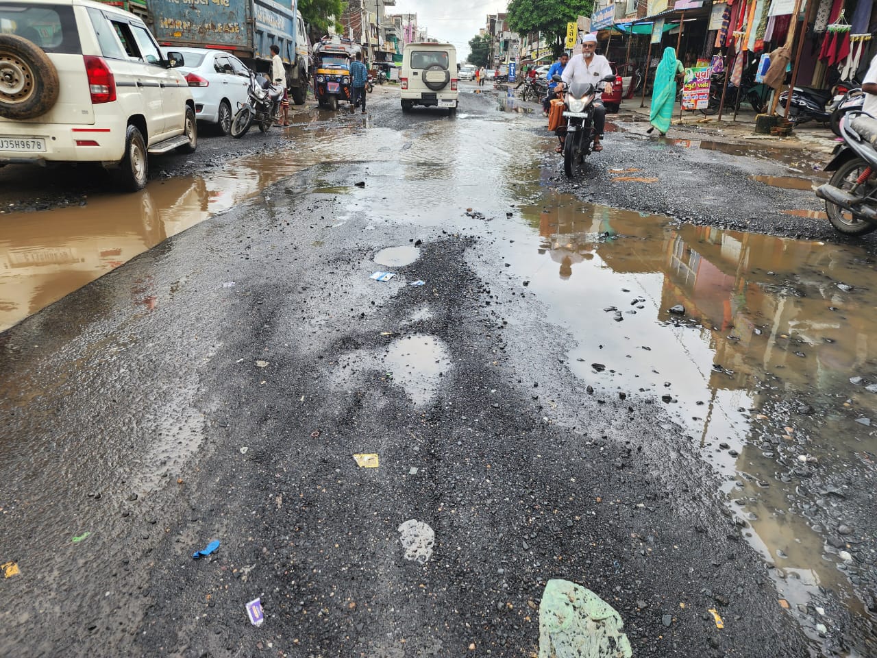 સંતરામપુર કોલેજ રોડ વિસ્તારમાં સતત વરસાદ પડવાના કારણે લોકોના ઘરોમાં દુકાનોમાં પાણી ભરાઈ જતા અને વરસાદી પાણીનો નિકાલ ના કરતા લોકો મુશ્કેલીમાં મુકાયા ધંધા રોજગારમાં મોટી અસર જોવા મળી હતી આ વિસ્તારની અંદર પાલિકા દ્વારા દર વર્ષે રીપેરીંગ માટેનો ખર્ચ પણ કરવામાં આવે છે તેમ છતાંય પરિસ્થિતિ આજ જોવા મળી આવેલી છે સંતરામપુર બસ સ્ટેશન ચાર રસ્તા થી કારગીલ સુધી રસ્તા હાલતમાં ક્યાં દેખો ત્યાં મોટા મોટા ખાડા જોવા મળી આવેલા છે દિન પ્રતિદિન પરિસ્થિતિ ગંભીર બનતી જાય છે અમરદીપ સોસાયટીની અંદર મોટું પાણીનું તળાવ જોવા મળી આવેલું છે આના કારણે લોકોને અવાર-જવર કરતી પણ બંધ થઈ ગઈ છે વહેલી તગી આ વરસાદી પણ નિકલ કરવામાં આવે એને રસ્તાની મરામત કરવામાં આવે તેવી લોકોની માંગ ઉભી થયેલી છે.