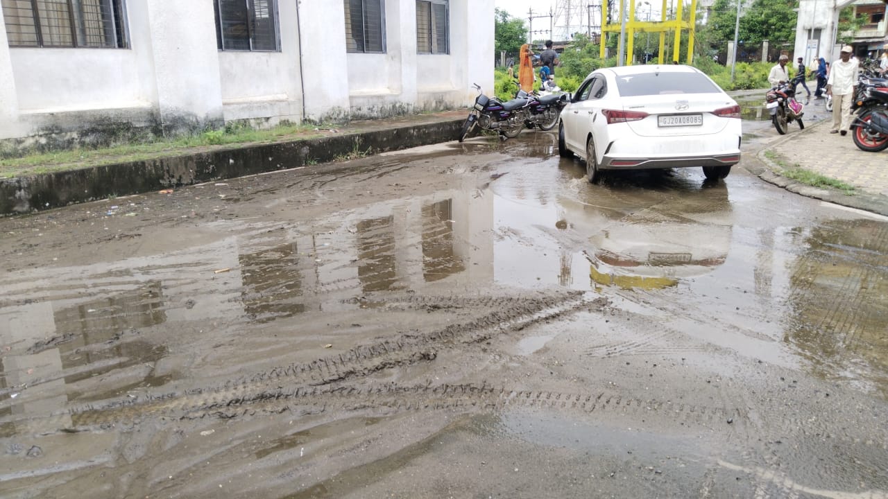 સંજેલી તાલુકામાં મામલતદાર કચેરીના પટાગણમાં કાદવ કિચડથી ભરપૂર ગંદકી.