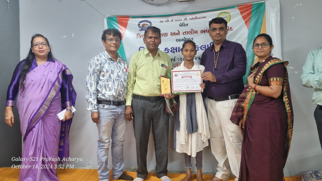 દાહોદ. GCERT ગાંધીનગર પ્રેરિત તથા DIET દાહોદ આયોજિત ગરવી ગુજરાત થીમ અંતર્ગત સિંગવડ તાલુકાના જિલ્લા કક્ષાના કલા મહોત્સવમાં બાળકવિ સ્પર્ધામાં પહાડ પ્રાથમિક શાળાના શિક્ષક પ્રકાશભાઈ આચાર્ય અને જાગૃતિબેન પાઠક નાં માર્ગદર્શન હેઠળ હઠીલા વૈશાલીબેન રાજુભાઈ એ તરસ્યો ગુજરાતી શિર્ષક પર ગુજરાતની અસ્મિતા ને દુહા છંદ અને અલંકારથી સજજ કાવ્ય રચી નિર્ણયકોને મંત્રમુગ્ઘ કરી જિલ્લામાં પ્રથમ ક્રમાંક પ્રાપ્ત કરી શાળાનું નામ રોશન કરવા બદલ ડાયટના પ્રાચાર્યશ્રી તેમજ ડાયટ પરિવાર તેમજ શાળા પરિવાર તરફથી ખૂબ ખૂબ અભિનંદન સાથે હાર્દિક શુભેચ્છા પાઠવી હતી.