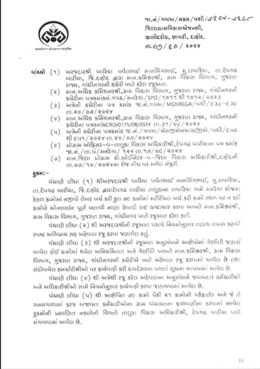 મનરેગામાં 21 કામો કાગળ પર બતાવી લાખોનું કૌંભાડનો પર્દાફાશ:DDO ની કાર્યવાહીથી ખળભળાટ..