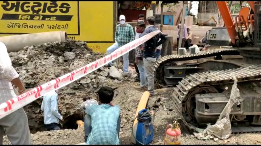 ગુજરાત ગેસના કર્મચારીઓ દ્વારા પાઇપલાઇનનું સમારકામ દરમિયાનની તસવીરો