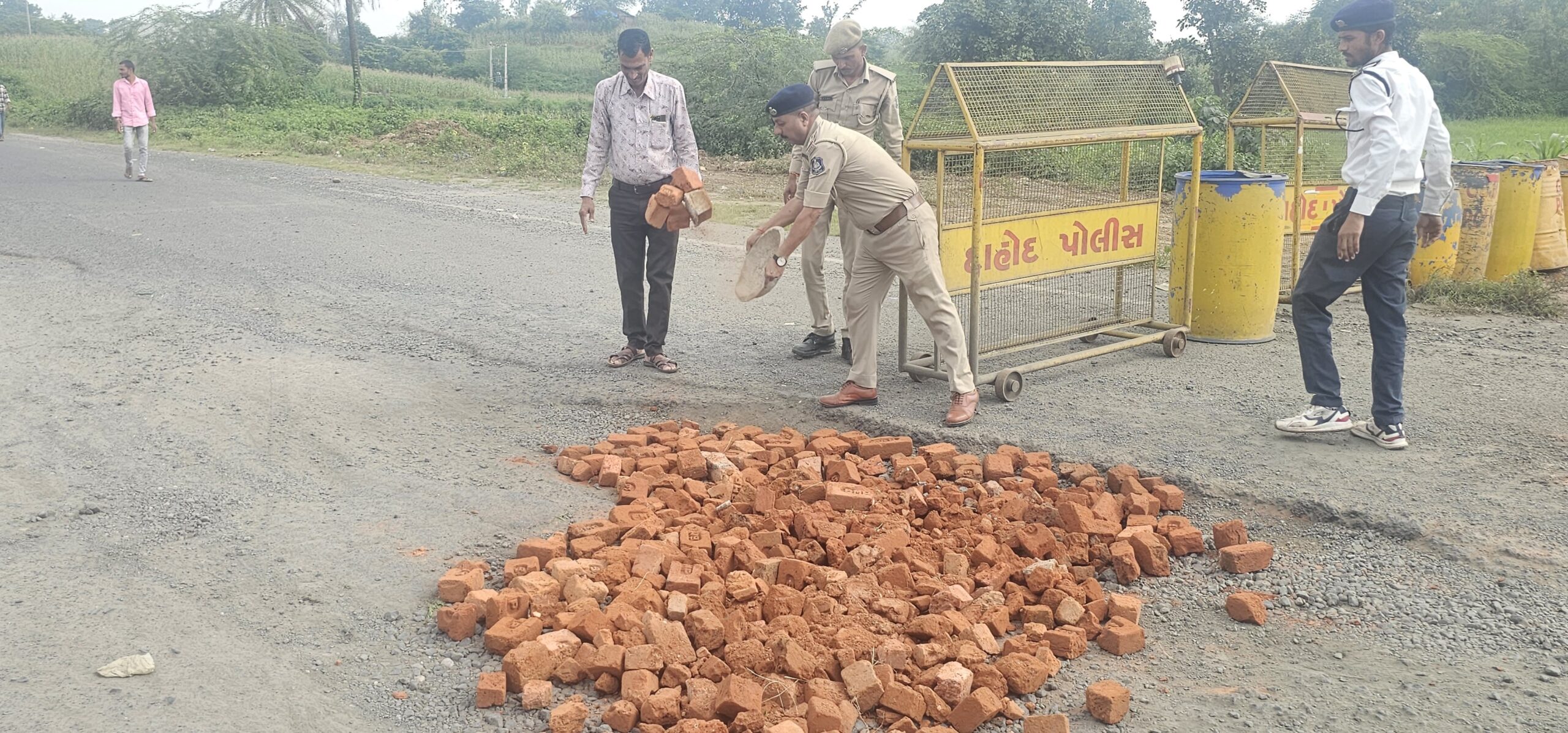 ઝાલોદ થી બાસવાડા નેશનલ હાઇવે ઉપર આવેલ ધાવડીયા ચેકપોસ્ટ રોડ ઉપર પોલીસે ખાડા પૂર્યા હતા
