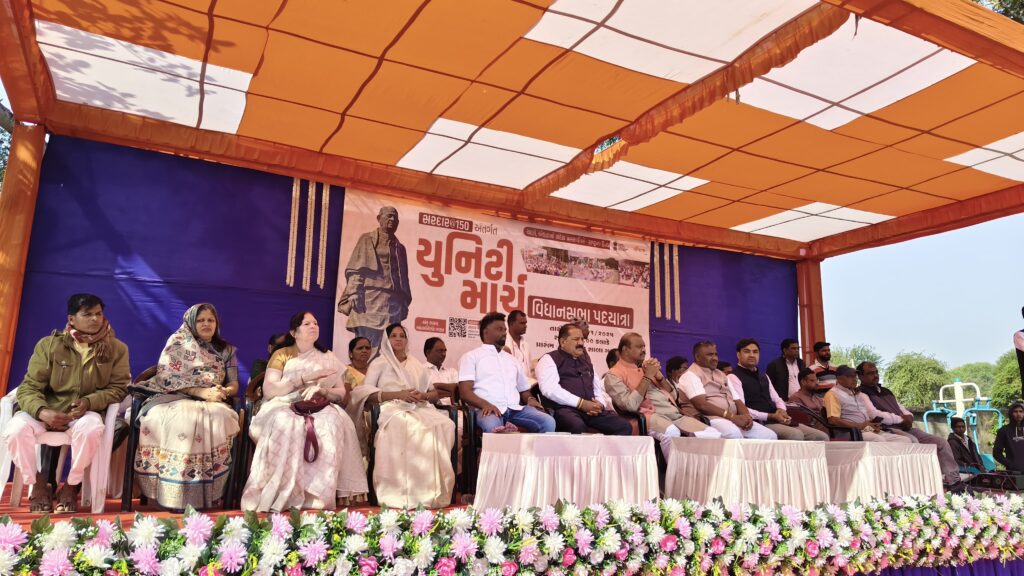 સાંસદશ્રી જશવંતસિંહ ભાભોરની વિશેષ ઉપસ્થિતિમાં પદયાત્રાનો શુભારંભશ્રી સરદાર વલ્લભભાઈ પટેલની પ્રતિમાને પુષ્પાંજલિ અર્પણ કરીને થયો હતો. દીપ પ્રાગટ્ય કરીને શરુ થયેલા આ કાર્યક્રમમાં સાંસદશ્રી જશવંતસિંહ ભાભોરએ જણાવ્યું હતું કે, સરદાર પટેલે અખંડ ભારતનું નિર્માણ કર્યું હતું. એમની નેતૃત્વ શક્તિ અને સૂઝ-બુઝને કારણે ગાંધીજીએ તેમને સરદારનું બિરુદ આપ્યું હતું. સરદાર પટેલ ગુજરાત રાજ્ય માટે ગૌરવનું પ્રતિક છે. વધુમાં તેમણે હાલ સમગ્ર દેશમાં થઇ રહેલ સરદાર વલ્લભભાઈ પટેલ, ભગવાન બિરસા મુંડા અને વંદે માતરમના ૧૫૦ વર્ષની ઉજવણી પર ભાર મૂક્યો હતો. તેમણે સ્થાનિક અને સ્વદેશી ઉત્પાદનોના ઉપયોગને પ્રોત્સાહન આપવા સૌને અનુરોધ કર્યો હતો. છેલ્લે ઉપસ્થિત સૌએ સ્વદેશી અપનાવવા માટે સામૂહિક સંકલ્પ લીધો હતો.