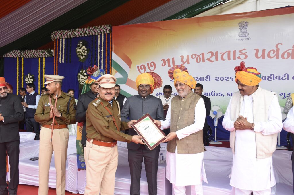 *પ્રભારી મંત્રીશ્રીએ પરેડનું નિરીક્ષણ કરી વિવિધ ક્ષેત્રોમાં ઉત્તમ કામગીરી કરનાર કર્મયોગીઓને પ્રમાણપત્ર એનાયત કરી સન્માનિત કર્યા*