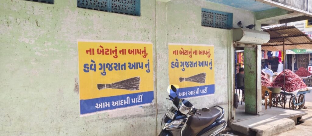 ખાસ કરીને આમ આદમી પાર્ટી સંબંધિત લખાણો જેમ કે “ના બેટા નું, ના બાપનું, હવે ગુજરાત આપનું” તેમજ ઝાડુના નિશાન સાથેના ચિત્રો શહેરના અનેક સ્થળોએ દેખાઈ રહ્યા છે. આ પ્રકારના પ્રચાર સામગ્રી આચાર સંહિતાના નિયમોનું ઉલ્લંઘન કરે છે કે નહીં તે અંગે સ્થાનિક સ્તરે ચર્ચા જાગી છે.